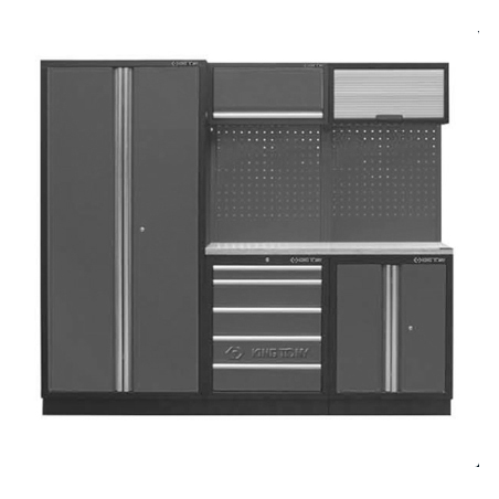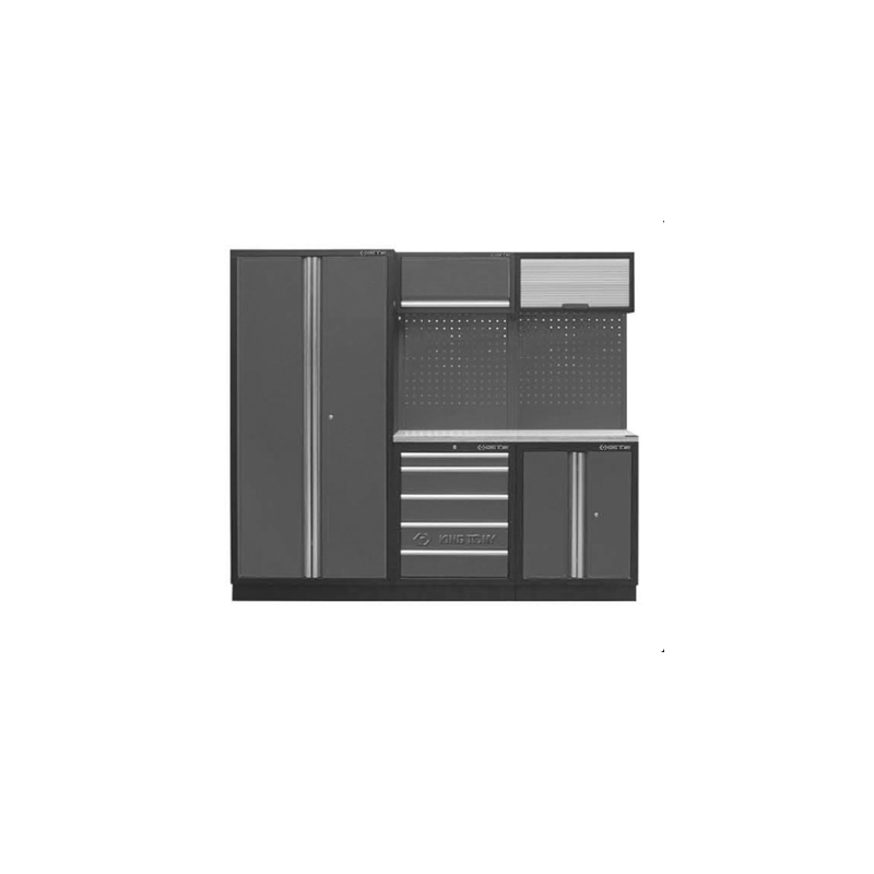 Zestaw mebli warsztatowych King Tony o wymiarach 2275 mm (dł.) x 460 mm (gł.) x 2000 mm (wys.).