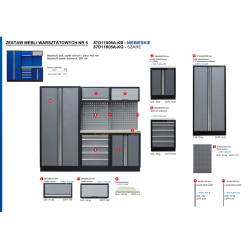 W skład zestawu wchodzi 5 szafek metalowych w tym: