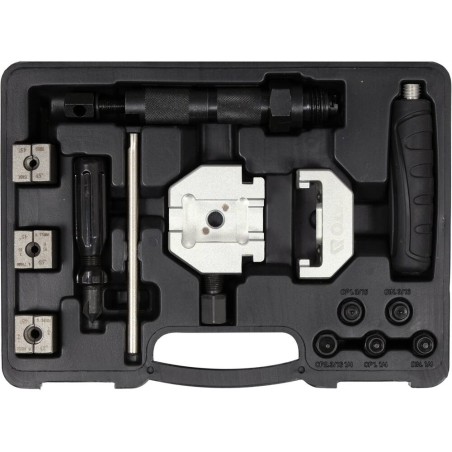 Przyrząd hydrauliczny do zarabiania końcówek przewodów hamulcowych, hydraulicznych, miedzianych, miedziano-niklowych oraz przewodów stalowych.